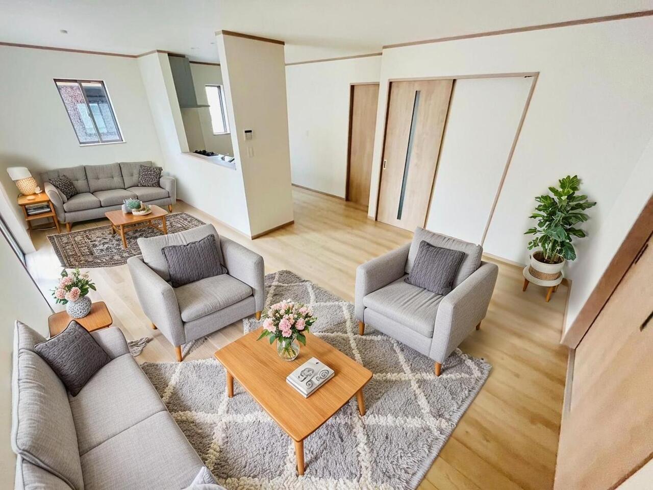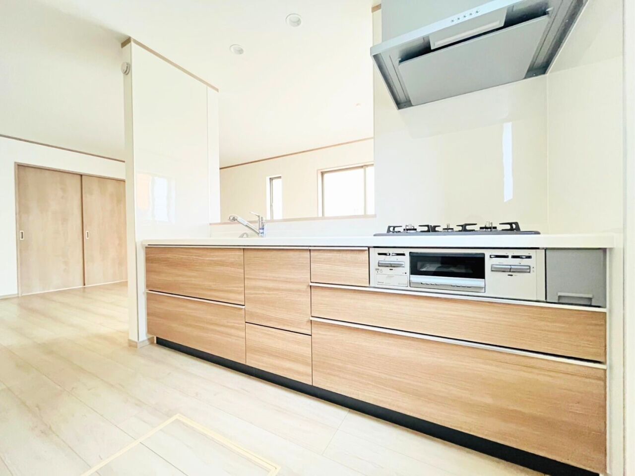 | 設備 | 電気、上水道、下水道、側溝、温水洗浄便座、トイレ2ヶ所、追焚機能、システムキッチン、カウンターキッチン、床下収納、室内洗濯機置場、都市ガス、複層ガラス、モニタ付インターホン | ||