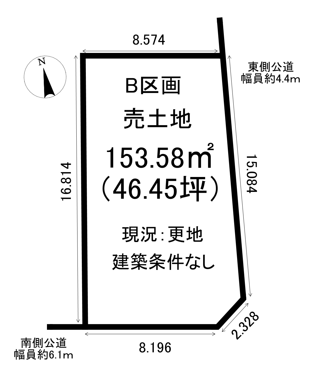 | 接道状況 | 南6.1m 公道 接面10.52m 東4.4m 公道 接面15.08m | ||