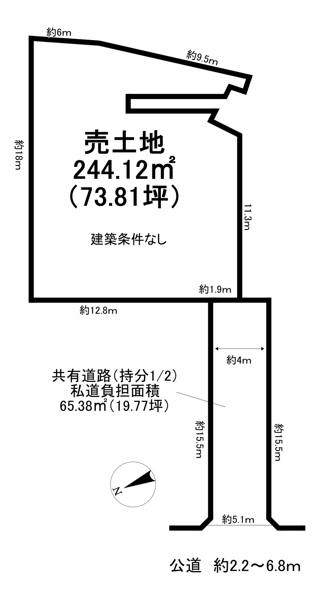 | 土地面積 | 244.12㎡ | 私道面積 | 65.38㎡ |