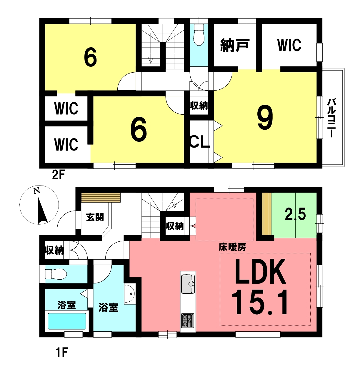☆太陽光発電システム搭載(5.5kw) 2階全てWIC付き!リビング床暖房完備!