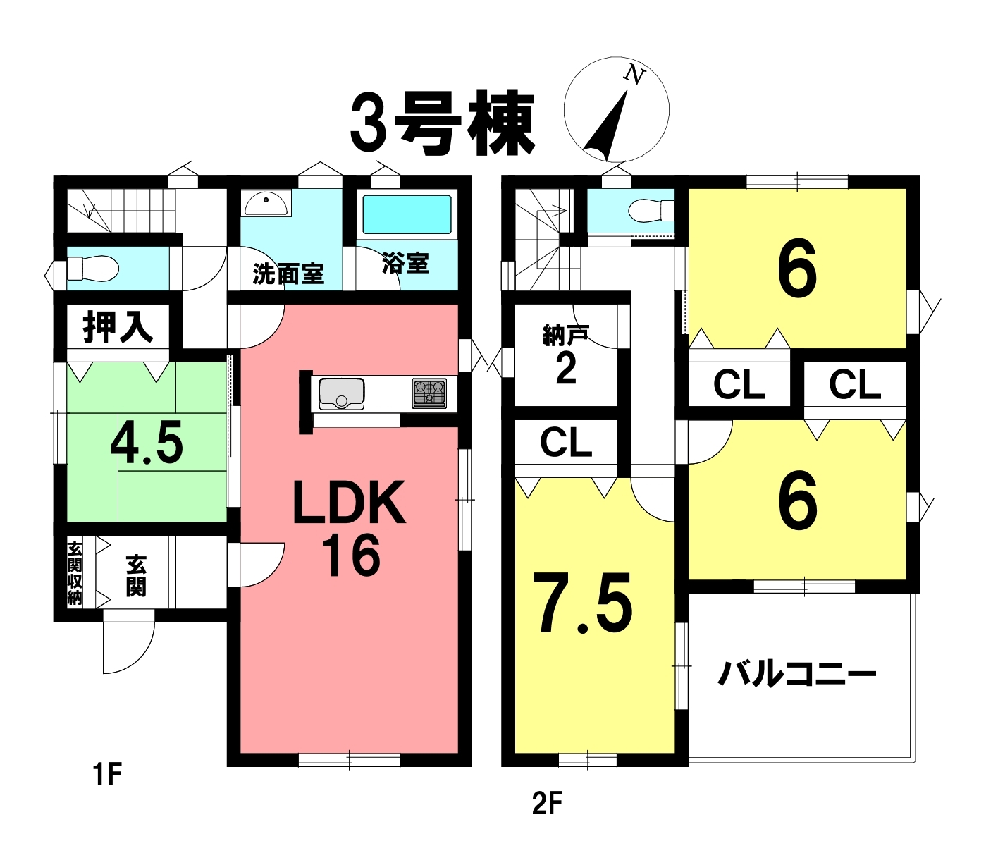 【3号棟】1階にリビング+1部屋付き!納戸付き!主寝室7.5帖!
