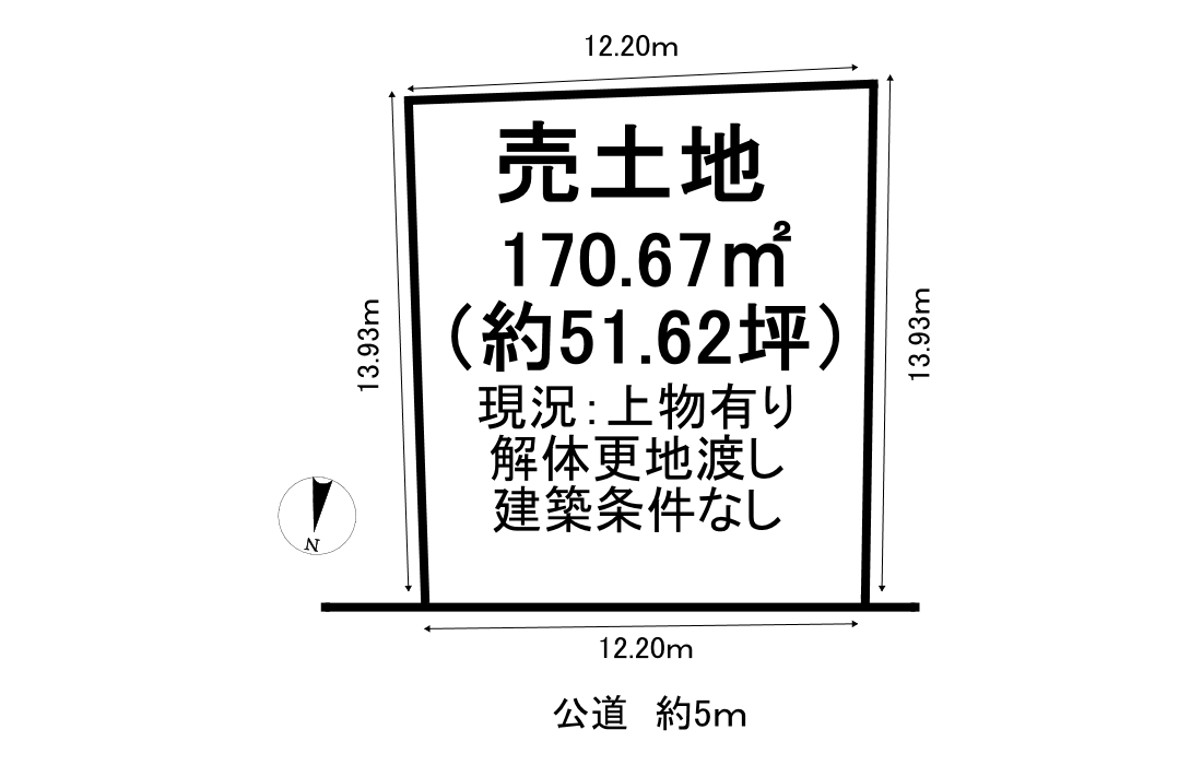 | 接道状況 | 北5m 公道 接面12.2m | ||