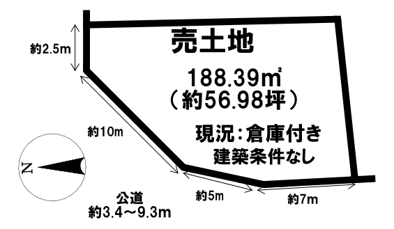 | 接道状況 | 北7m 公道 接面2.5m 北西7m 公道 接面15m 西3.4m 公道 接面7m | ||