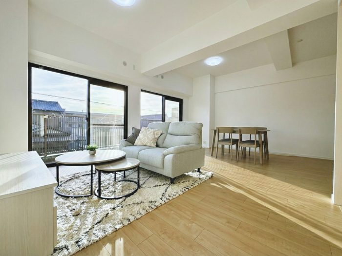 ●南西の陽光が、約17帖の大空間を優しく満たす●賢く選ぶ、都心のゆとり。駐車場完備の駅近ライフ。