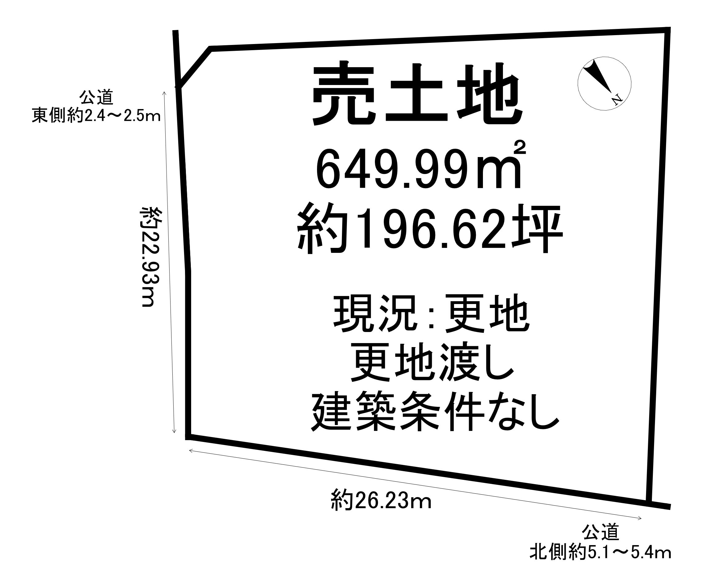 | 接道状況 | 北5.1m 公道 接面26.23m 東2.4m 公道 接面22.93m | ||