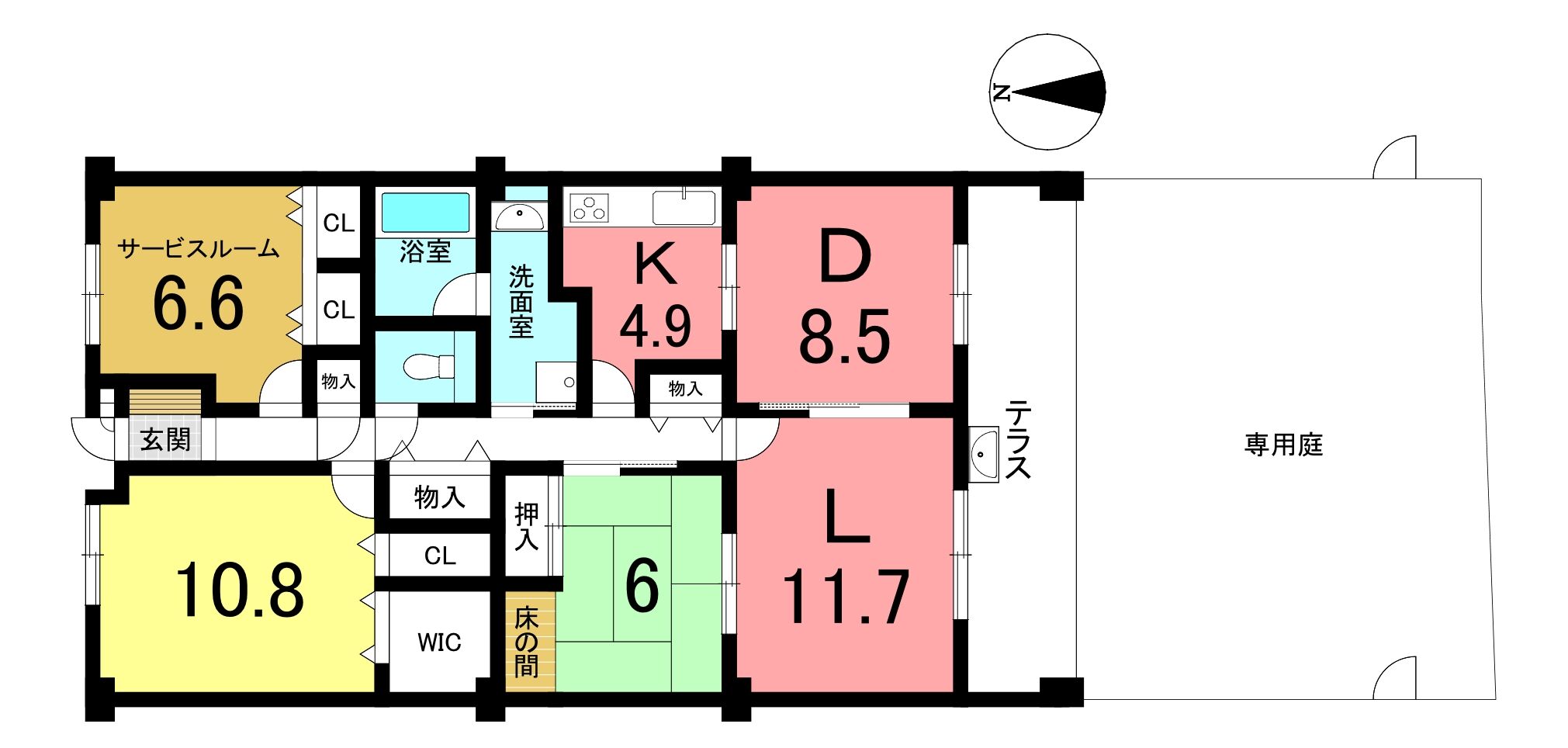 | 設備 | 上水道、下水道、温水洗浄便座、システムキッチン、カウンターキッチン、ウォークインクローゼット、室内洗濯機置場、エレベーター、都市ガス、宅配BOX、オートロック、モニタ付インターホン、専用庭、テラス、バイク置き場、駐輪場 | ||