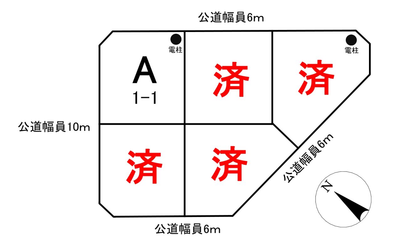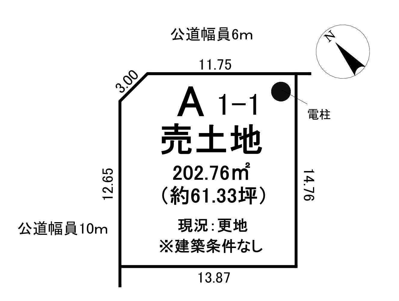 | 接道状況 | 北6m 公道 接面11.75m 西10m 公道 接面12.65m | ||