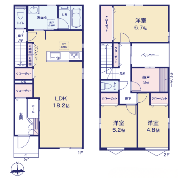 | 備考 | ●ゆとりある18.2帖のLDKと、家事ラク収納 ●3帖の大容量「納戸」と、使い勝手の良い2階空間 ●長く安心して暮らせる基本性能 ●未来の安心を約束する「【AVANTIA】長期優良住宅」です 。 ●「ベタ基礎」「断熱材」「24時間換気・床下換気」を標準装備し、快適な住環境をサポートします 。 ●1階には、ご家族全員でゆったりくつろげる18.2帖の広々としたLDKを確保しています 。 | ||