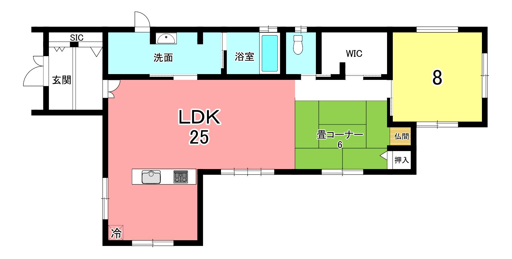 | 設備 | 上水道、下水道、側溝、システムキッチン、カウンターキッチン、IHクッキングヒーター、都市ガス、床暖房 | ||