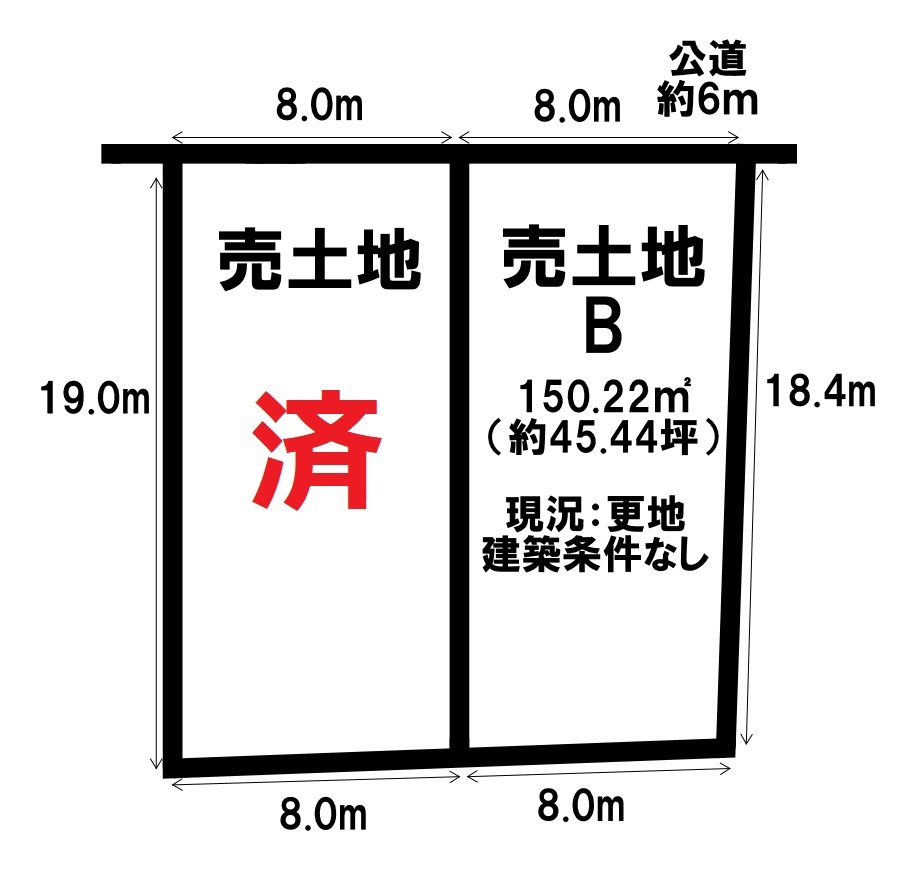 | 接道状況 | 北6m 公道 接面8m | ||