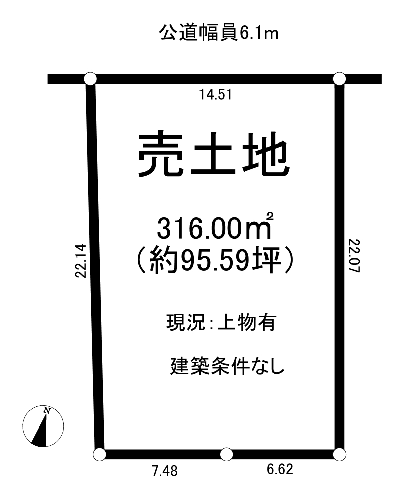 | 接道状況 | 北6.1m 公道 接面14.51m | ||