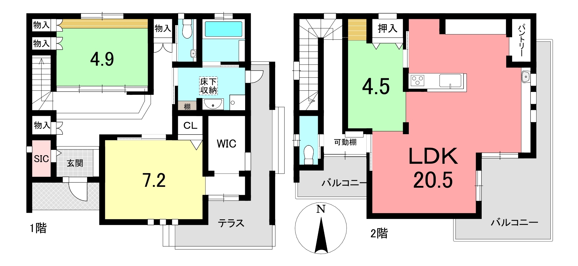 | 設備 | 上水道、下水道、温水洗浄便座、トイレ2ヶ所、システムキッチン、カウンターキッチン、ウォークインクローゼット、床下収納、室内洗濯機置場、テラス | ||