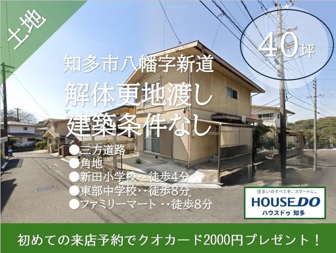 | 備考 | ●三方道路角地! ●小中学校まで徒歩10分圏内! ※別途ライフラインの引込費用がかかる場合がございます。 [名鉄河和線]八幡新田駅 徒歩16分 | ||