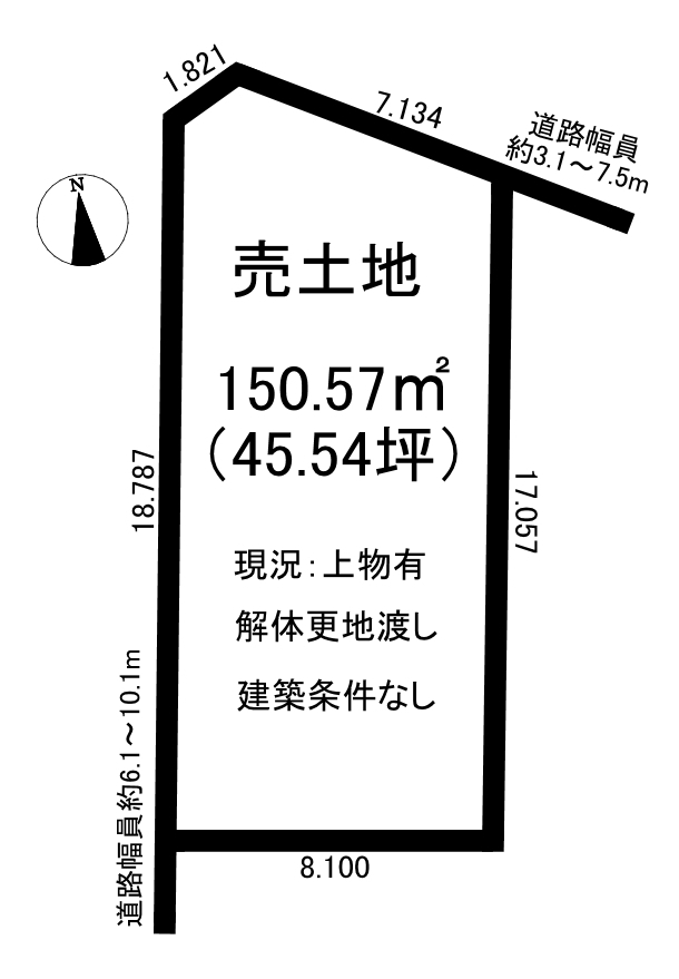 | 接道状況 | 北5.3m 公道 接面7.13m 西7.9m 公道 接面18.78m | ||
